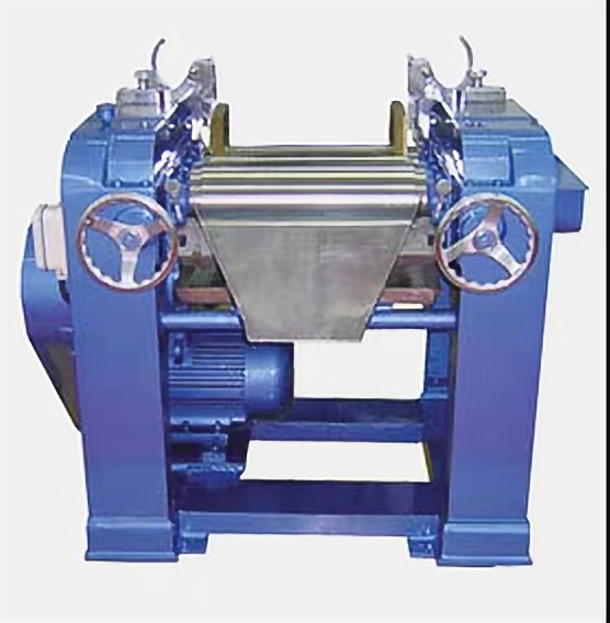 三輥研磨機(jī)適用膏體或高粘度物料使用。該機(jī)通過水平的三根輥筒的表面相互擠壓,手動式調(diào)節(jié)輥筒之間的間距,以不同速度的摩擦達(dá)到研磨效果??裳b有緊急制動按鈕,防止落入異物導(dǎo)致的設(shè)備損壞。輥?zhàn)邮褂锰厥庥操|(zhì)合金澆鑄而成;也可以使用大理石材質(zhì)。傳動采用鏈條傳動、齒輪調(diào)輥。